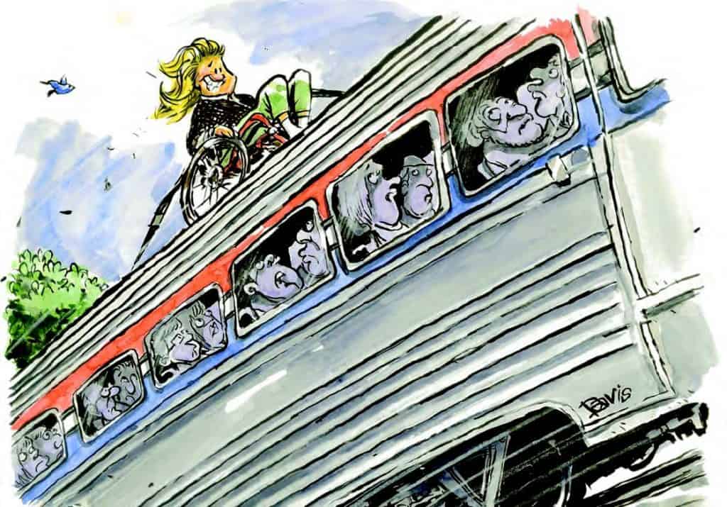 When it came time to bring my daughter to college to start her freshman year, I called Amtrak to buy tickets for my family. We have been regulars on the train, and I thought I knew the routine. ♦ “Hi, there,” I said brightly to the agent who answered. I explained which train and date we needed. “And one more thing – I use a wheelchair, and I need to reserve a wheelchair space.” ♦ “I’m sorry, ma’am, but there are no wheelchair spaces available on that train.” ♦ I was surprised. That train is never crowded. I wondered if there was a mistake, but she assured me that she was correct.