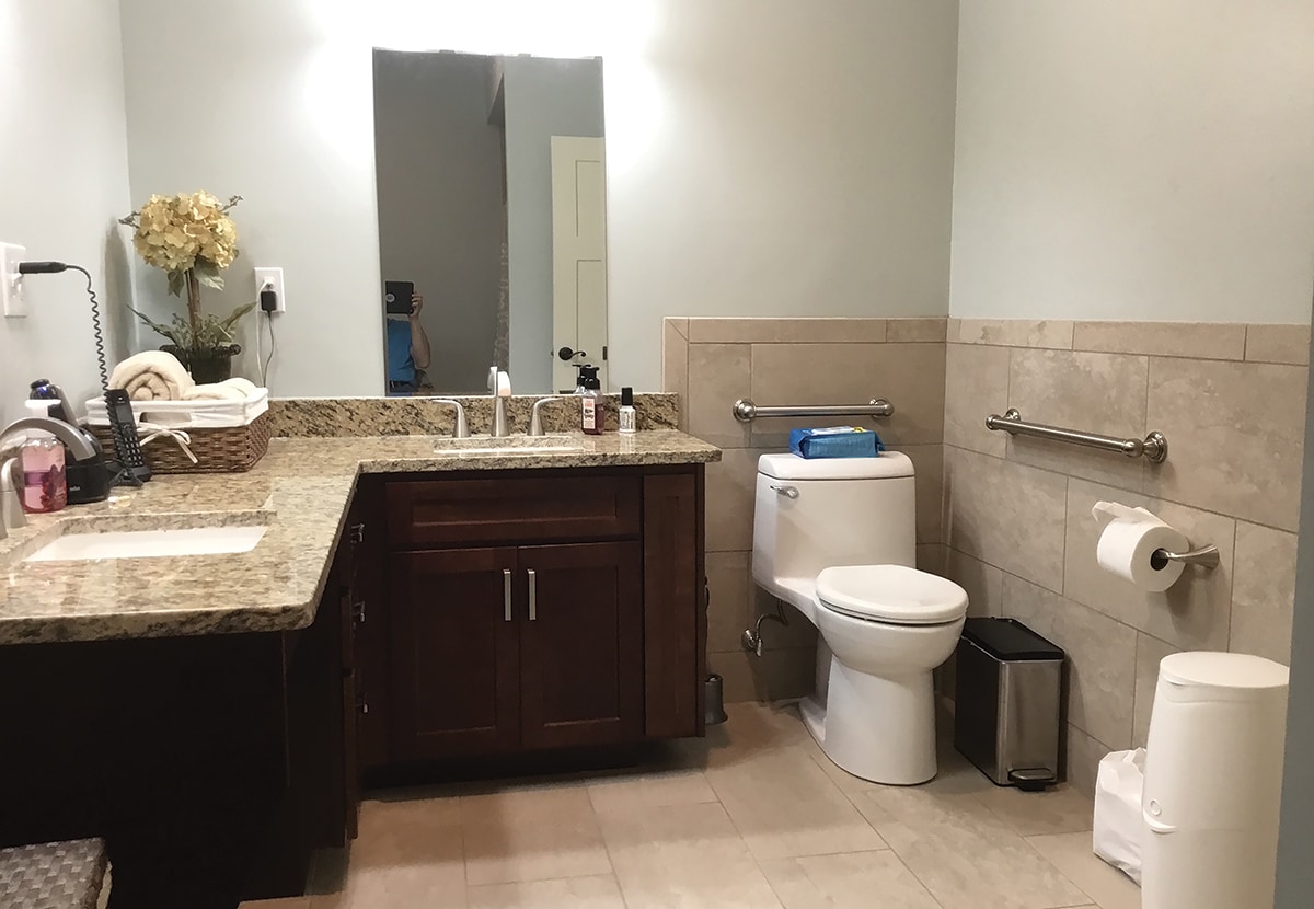 If you have the budget, it’s worth considering the accessibility of any spare bedrooms and bathrooms as well. Chamberlain put two bathrooms with roll-in showers in her home, so that when her wheelchair-using friends visit, they have an accessible bathroom too.