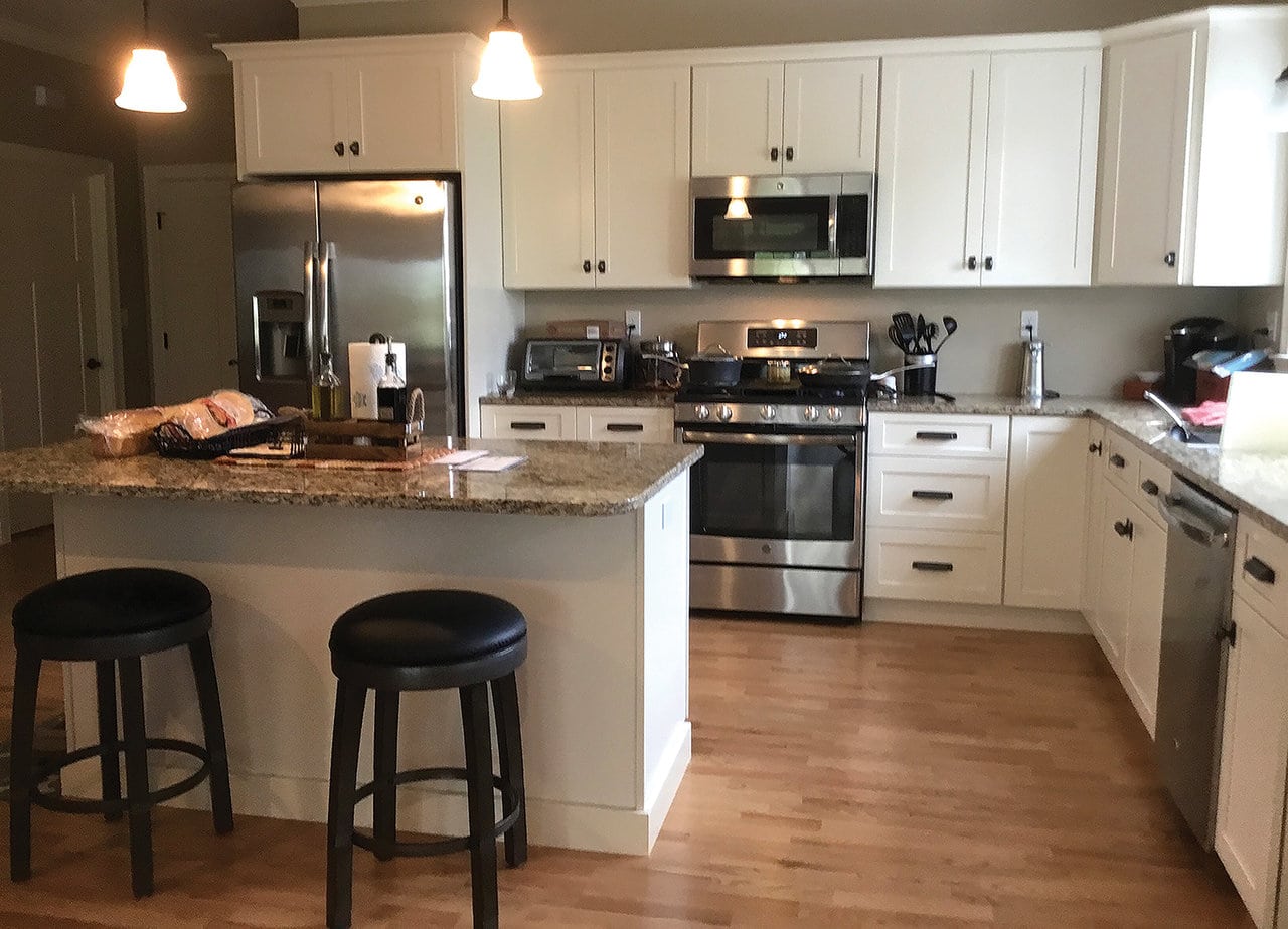 DiBiasio’s only kitchen modification was to place their island 4 feet from the cabinets instead of the narrower aisle their plans originally called for. “We’ve got a pretty traditional division of labor here. My wife does most of the cooking and stuff in the kitchen, so we left it pretty much the way she wanted it,” he says.