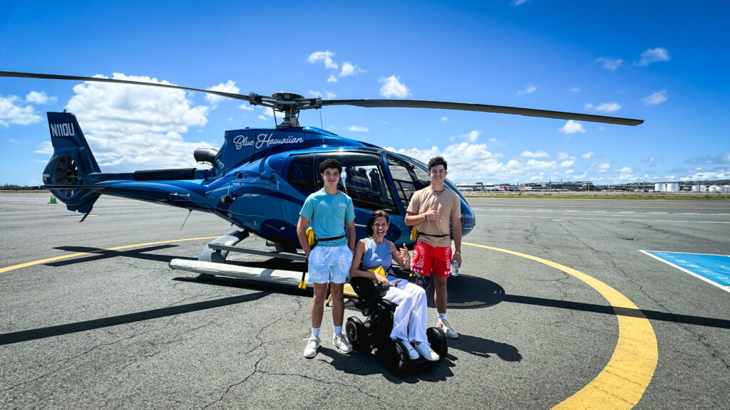 With a full stomach, now it’s time to explore Oahu by air. Take an accessible taxi with Handi-Van to Blue Hawaiian Helicopters on the outskirts of the Honolulu airport. They have a specialized chairlift that allows you to transfer from your wheelchair to the lift seat, then raises you up to the same level as the helicopter backseat. The lift does have armrests, but you’ll need to have some upper body control or someone to support you. The staff is more than happy to help you with the transfer and make sure that you can get into the helicopter safely, then they will roll your wheelchair to a hangar until you return.