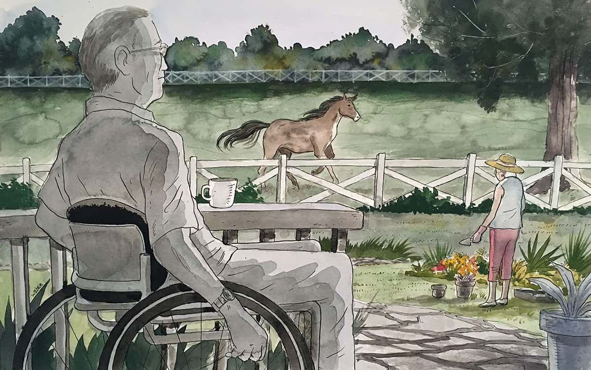 Christopher Finney, a 65-year-old para in rural Kansas, manages to keep an eye on his mother as best he can. Finney owned an electrical business with his father prior to being knocked out of his truck’s bucket and falling 27 feet. “I didn’t bounce well,” he deadpans. “After dad passed, Mom and I owned the business, and she’d use me as a sounding board. That’s when I noticed her repeating herself a lot.”