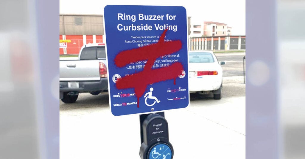 Prior to S.B. 1, Cole helped the Justice Department implement a 2019 consent decree that ordered Harris County to survey and fix physical access issues at polling places and provide effective curbside voting options for people with disabilities. In 2020, he surveyed several curbside voting locations in Harris County. They were intended to provide a convenient way for people with disabilities to vote — you drive up, push a button on a post and an election worker comes out to help. He found them inefficient and some even unusable. “The sites I visited were in parking lots, difficult to see, with no signs pointing to them,” he says. “Sometimes the buttons don’t work, no one will answer, or someone will answer but they don’t know what to do.”