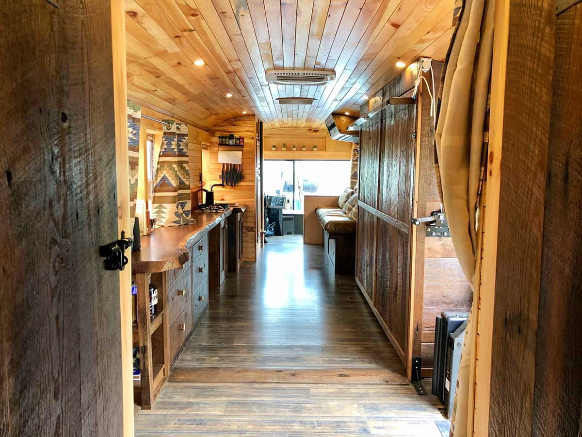 The county didn’t have much to say about parking a bus on your own property though. Speer had been tinkering with the idea of a school bus conversion and when a good friend bought one, Speer saw the practicality and the blank slate that a “skoolie” (as they’re known) offered. He decided to go for it. “I dove into it just thinking, ‘I can do this,’” he says. “But I was in a bit over my head. I’ve built things before, but using a wheelchair there are just certain things you can’t do by yourself.” Speer hired a friend of a friend who was looking for work and the two started what would become a two-year conversion process.