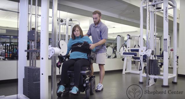 Anyone who has tried to search for adaptive fitness information online knows how difficult it can be to find specific, coherent information to help develop a fitness routine. “We heard from wheelchair users, Shepherd staff and YMCA staff that there are little to no useful videos/information about how to help someone with mobility impairments (specifically SCI) in a gym. There were no resources out there,” says Shari McDowell, the program director for Shepherd Center’s SCI Program.