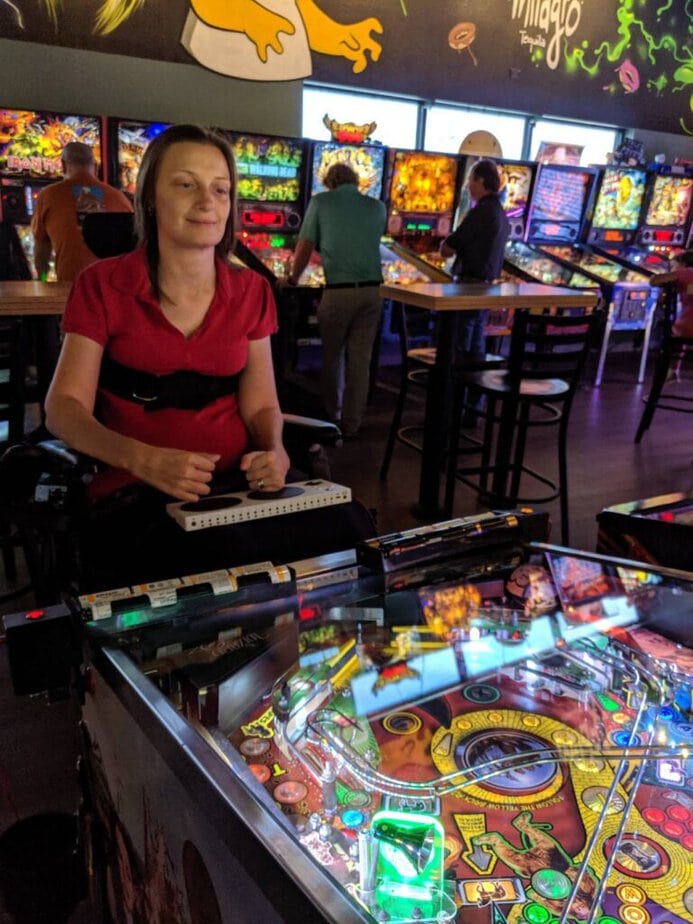 For 43-year-old C5 quad and United Spinal member Angie Hulsebus, a round of pinball used to look more like a game of Twister. She had to parallel park her power wheelchair almost touching the front of the machine. “I can push one of the flipper buttons with one hand, and then almost always my husband has to control the other flipper while leaning over my lap,” she says. “We are in each other’s space.”