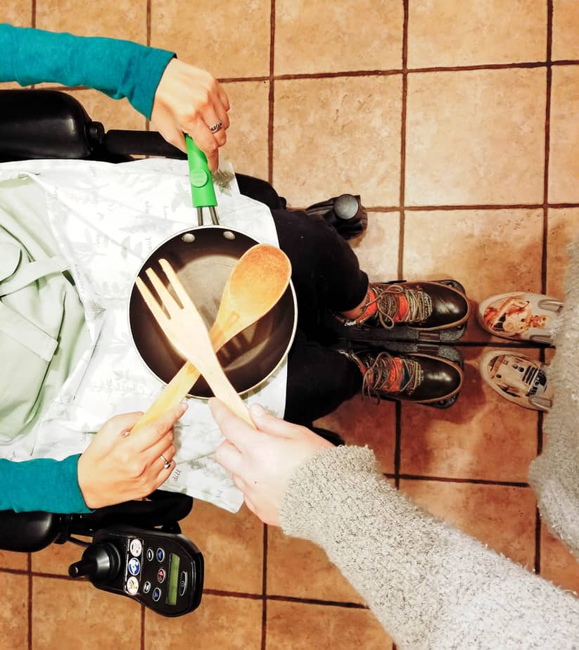 As a quadriplegic with an inaccessible kitchen, I never thought I’d be able to cook — dicing, chopping, picking up pots and pans. Turns out I can. Whether I’m following a recipe or I’m creating something with the food I have available in my home, my role is to give step-by-step instructions, assess if we’re on track, taste-test and approve the final product.