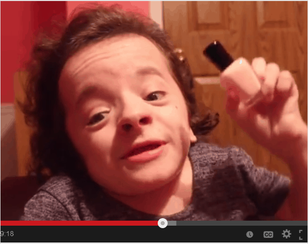 She started vlogging in 2013, and her first video set the tone for what her video channel would be — simple beauty product reviews. Sure, Michaela has a disability — but it’s never made a focal point of her videos. Her very first video was a review of Victoria secret iPhone case and ear buds and her complaining about their customer service. Hellooo — all much more important things.