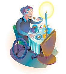 Above all, singles bars depress me because they remind me how cruel and inaccessible the dating scene is for people with disabilities. Each February, we at New Mobility endeavor to show our readers that having a disability needn’t pose a barrier to fulfilling relationships and a healthy sex life–and yet the reality is that within our community, the level of sexual frustration is probably just as high as the unemployment rate.