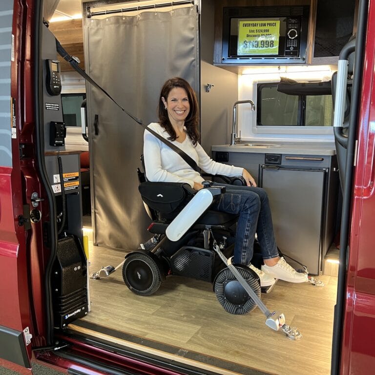The Winnebago Roam isn’t a good fit for everyone. One chair user with a companion is probably the maximum you could comfortably fit — it would likely be too small for family travel. And some of its accessible features do require a bit of mobility. Still, for those with the right amount of function, the Roam could be a great option for road trips or longer camping vacations. Having amenities like a toilet and kitchenette could also make day trips or long days of running errands easier and more comfortable.
