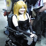At 23 years old, “Misa,” an anime and video game nerd, already has 4 years of cosplaying under her belt. Born with a progressive form of muscular dystrophy carried Charcot-Marie Tooth (it affects her nerves from her knees and elbows down), Misa (her real name is Amanda Knightly) had to begin using a wheelchair when she was 10. At the time, this girl had a bright future in store when it came to costuming and anime, she just didn’t know it yet.