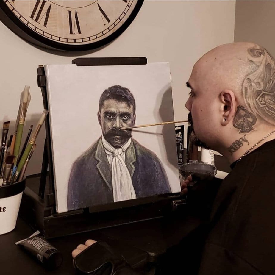 Prior to becoming a quadriplegic at the age of 18, Frank Espinosa, 51, of Whittier, California, never picked up a paintbrush or took an art class. As part of his personal healing and rehabilitation, he began sketching with his mouth and progressed to painting.