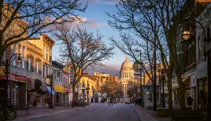 Madison, the capital of Wisconsin, has one of the top schools in the nation, University of Wisconsin-Madison, but it is known as the City of Four Lakes. Madison is also the home of a world-class farmer’s market; ethnic food galore; wonderful parks; an intrinsic trail system for walking, rolling and cycling; and a bevy of accessible events and performance venues that operate even during the cold winters.