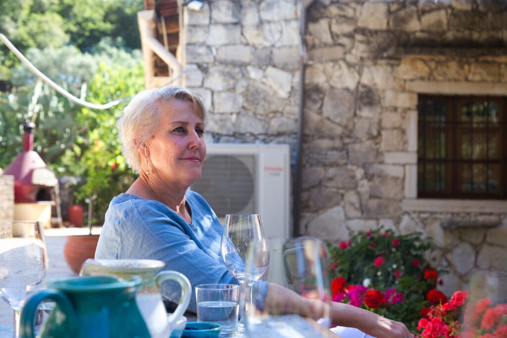 In that moment of introspection, I knew I needed a bold move to usher in my next decade. For years, my individuality had been obscured by caring for and identifying with others. And though it felt cliché, like so many middle-aged cinematic heroines, I needed to rediscover myself, reshape my home life, and gain a fresh perspective. I had always dreamed of traveling to Greece and easily persuaded my daughter Zoë, her partner Chaise, and my best friend Kristen to join me. I was eager to embrace the unknown and savor life’s simple yet profound beauty. I just hoped it would be accessible.