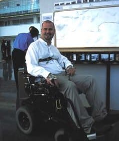 A C5-6 quad from a diving accident when he was 18, Nevis had a hard time finding a college that would accept him as an architecture student. Building and drawing models by hand are typical activities for architects-in-training, and Nevis has limited use of his hands. Finally, Arizona State University accepted him and agreed to keep a computer in each of his classrooms. He learned the same skills as his classmates, designing and building 3-D models, earning his bachelor’s in 1999 and his master’s in 2001.
