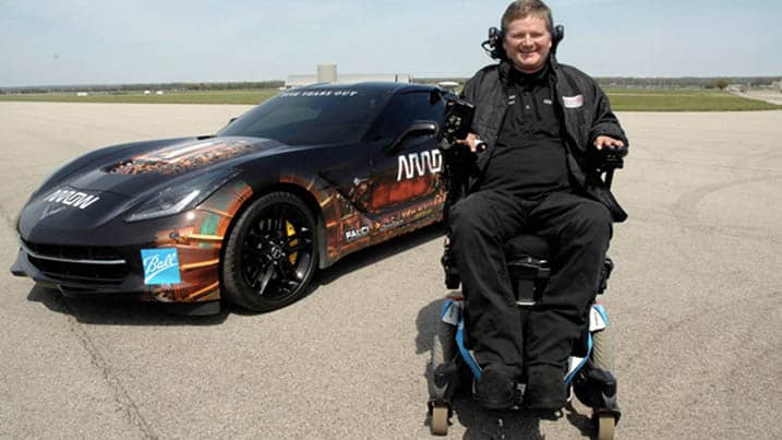 Schmidt, a quadriplegic and longtime IndyCar team owner, cruised several times around the hallowed track at speeds exceeding 100 mph in a modified 2014 Corvette C7 Stingray that he controlled only with his head. The drive was a liberating moment for Schmidt. “I think the majority of my emotion driving the car came from the fact that it felt incredibly normal,“ he says.