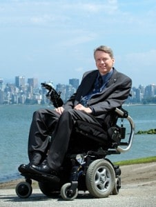Anyone who has met Sam Sullivan — not only mayor of the third largest city in Canada, but also a C4-5 quadriplegic from a 1979 skiing injury sustained at the age of 19, a Welfare recipient for seven years, founder of the Sam Sullivan Disability Foundation and a member of the Order of Canada — would instantly sense his uneasiness at wearing the title, “His Worship.” He is soft-spoken and unassuming, a polite man with a boyish smile. His gray-tinged hair imparts an air of respectability, and at times he seems almost shy. Yet hundreds of millions of television viewers watched worldwide as he accepted the Olympic flag from the mayor of Torino, Italy, at the Winter Olympics closing ceremony, and later, the Paralympic flag, waving each from his power wheelchair with the help of a specially-made holster and his trusty joystick.