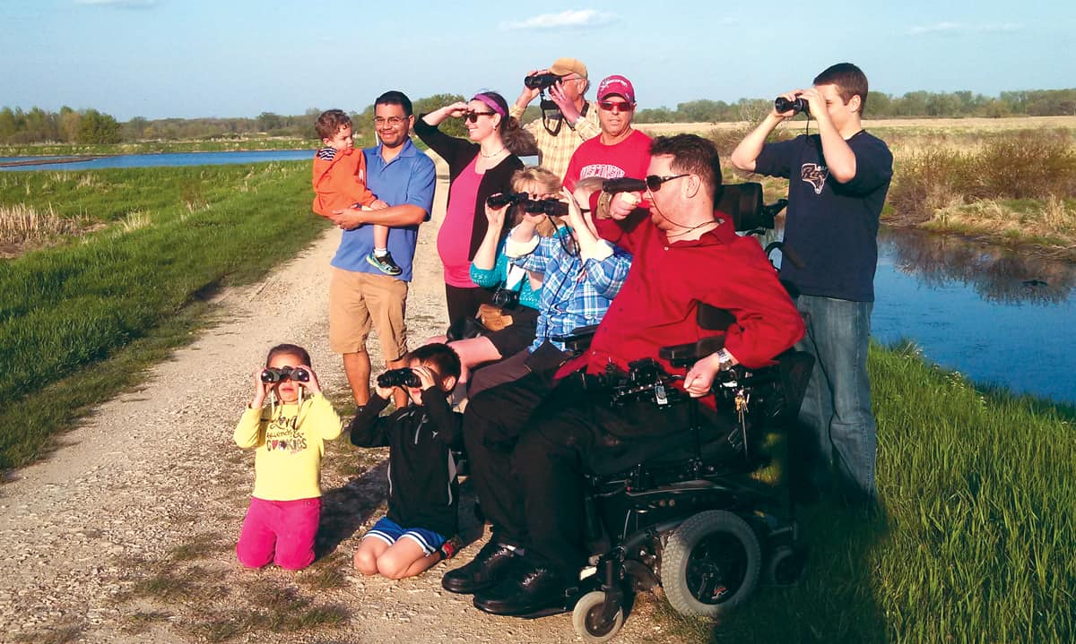 Kamal’s advice for starting birdwatching is to contact your local Audubon Society and local Ornithological Society for information and advice. It turns out the best birdwatching times are at sunrise and sunset, something that doesn’t always fit into body-management schedules for wheelchair users. “Because of this, I worked with the chapter president of the Ornithological Society in this area,” says Kamal. “He came to a Madison SCI meeting and did a presentation on birdwatching and offered to lead a group in the later afternoon rather than evening,” says Kamal. Turk even provided binoculars on a late afternoon birdwatching outing. “It was a success,” says Kamal. “We had wheelers, and one member came with her family and kids. We did it in September when there was a lot of migration going on and you could spot some rare species. We plan to do more of this.”