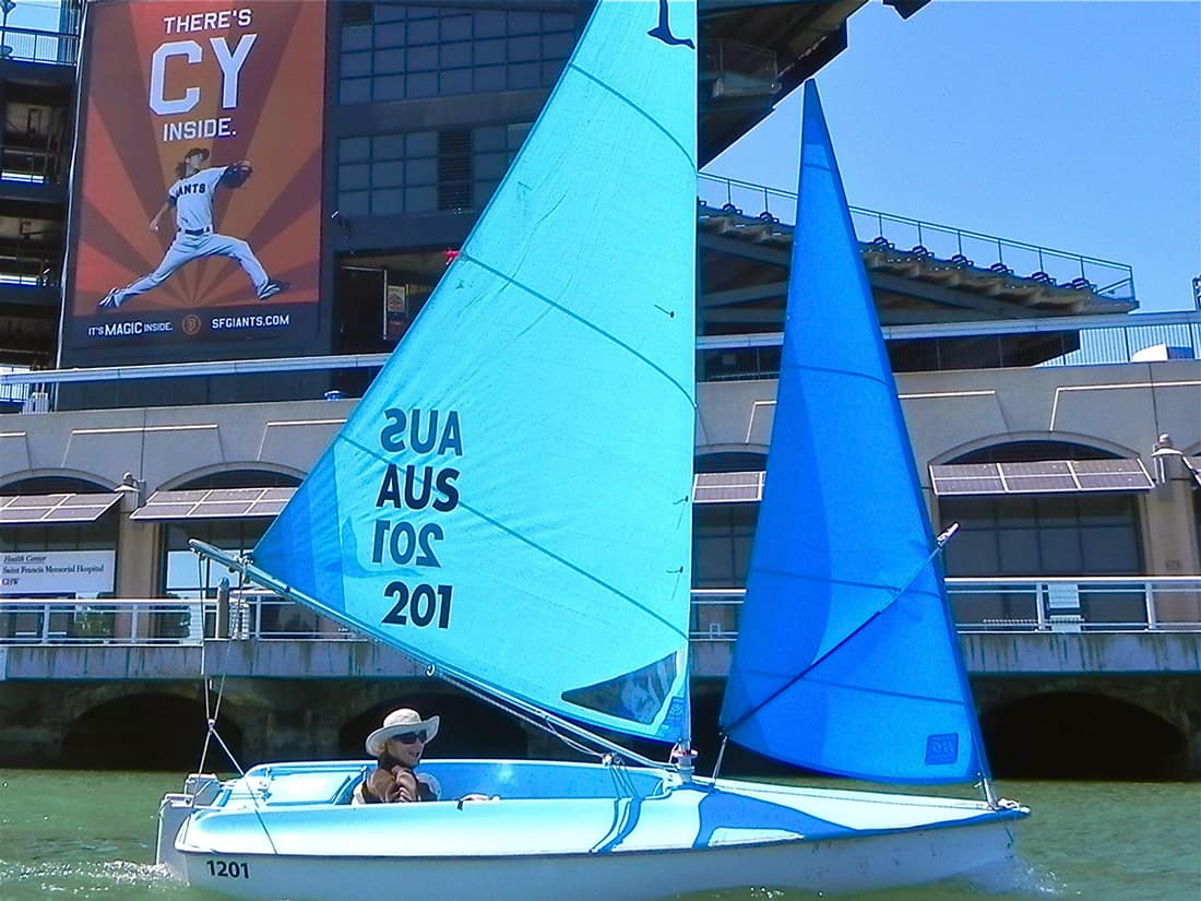 “One of the things I love about sailing is it is a great equalizer,” says Kathi Pugh, 58, from Berkeley, California. “It doesn’t matter if you are competitive or recreational. A high level quadriplegic can do it just as well as a paraplegic or nondisabled sailor. It’s about who is the best sailor, not who has more muscle control.” Pugh, in her 38th year as a C5-6 quad, grew up sailing every chance she got with her dad. After her injury, she focused on her studies, passed the bar and was working as a lawyer for the largest law firm in the state. “My office window overlooked San Francisco Bay. On a beautiful day I’d look out and see all these boats sailing and think, ‘Oh my gosh, I’ve got a great job but all I do is work, work, work. I’ve got to figure something fun to do because I’m miserable.’” So she signed up to try sailing with the Bay Area Association of Disabled Sailors — BAADS — with its docks in San Francisco Bay, arguably the world’s most versatile sailing area.