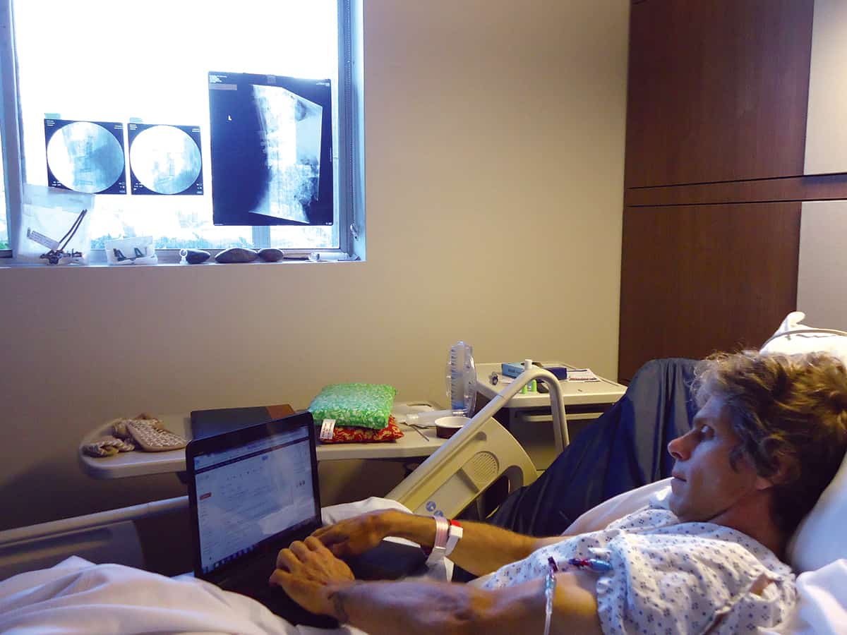 The two surgeries had been a success, and after three days in the ICU I was transferred to the rehab wing of the hospital. Sydney was staying in my room, and would for the next three weeks as I recovered. She was a fierce protector, warm companion, and driving force in partnering with me to manage my care in coordination with Dr. L. and the hospital staff.